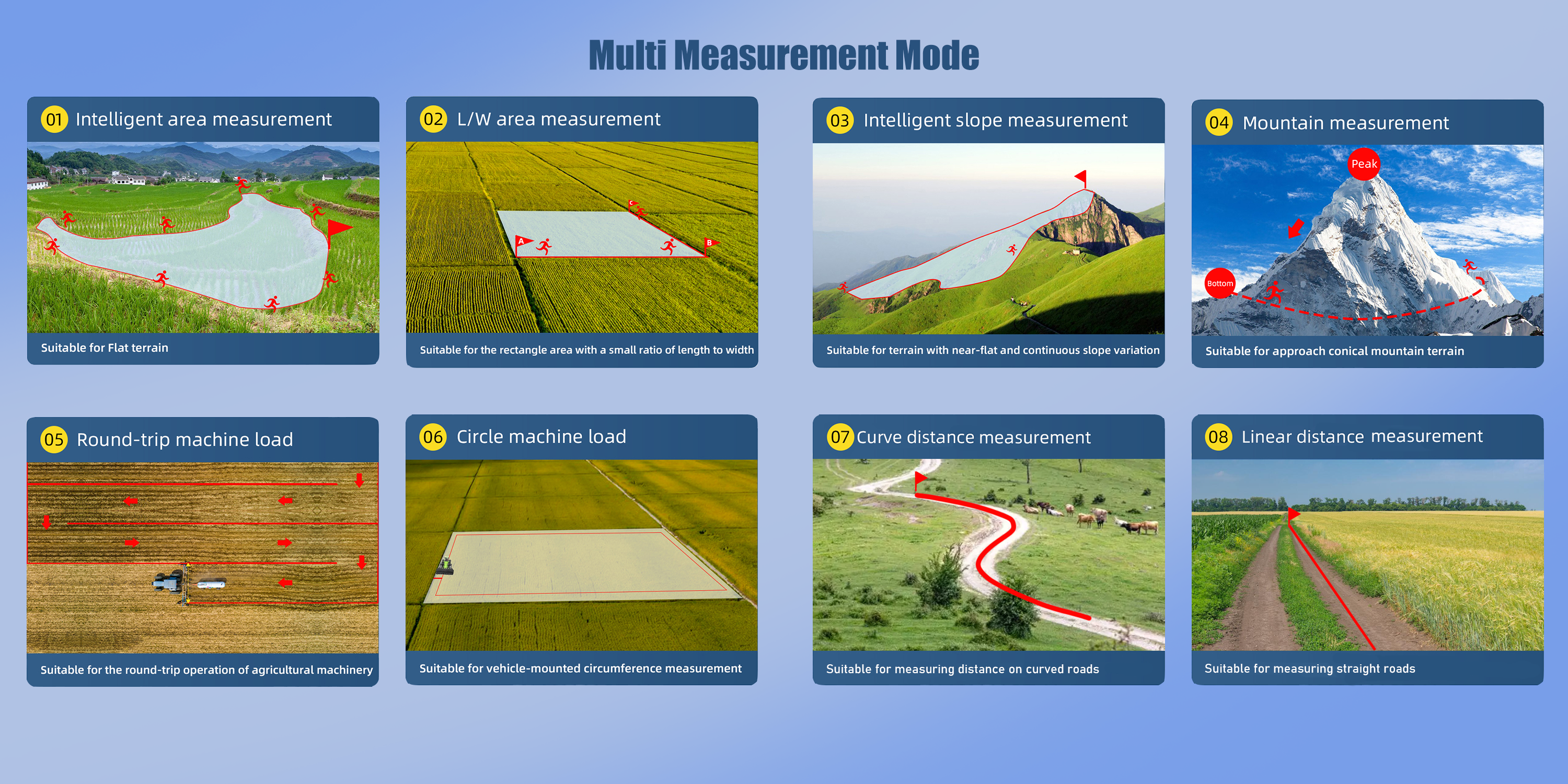 Our land meter supports all types of terrain, whether it is flat land or hills, there are corresponding modes, accurate measurement, reduce errors